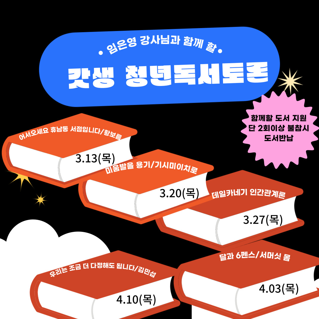 - 주요내용 : 독서토론, 북콘서트, 도서지원 등