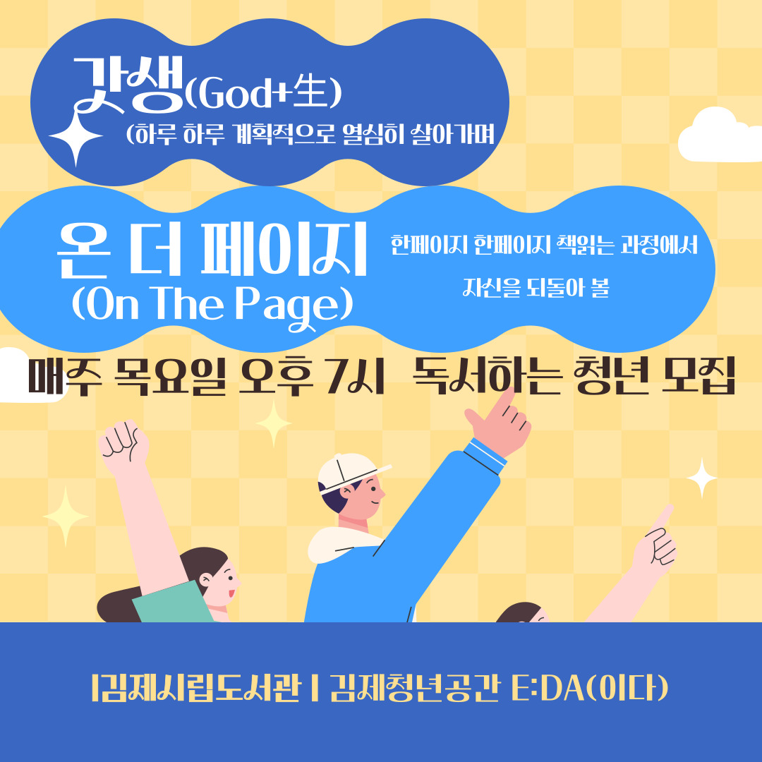 김제시립도서관과 함께 "갓생 청년독서 온더페이지"라는 주제로 독서 활동을 운영합니다!