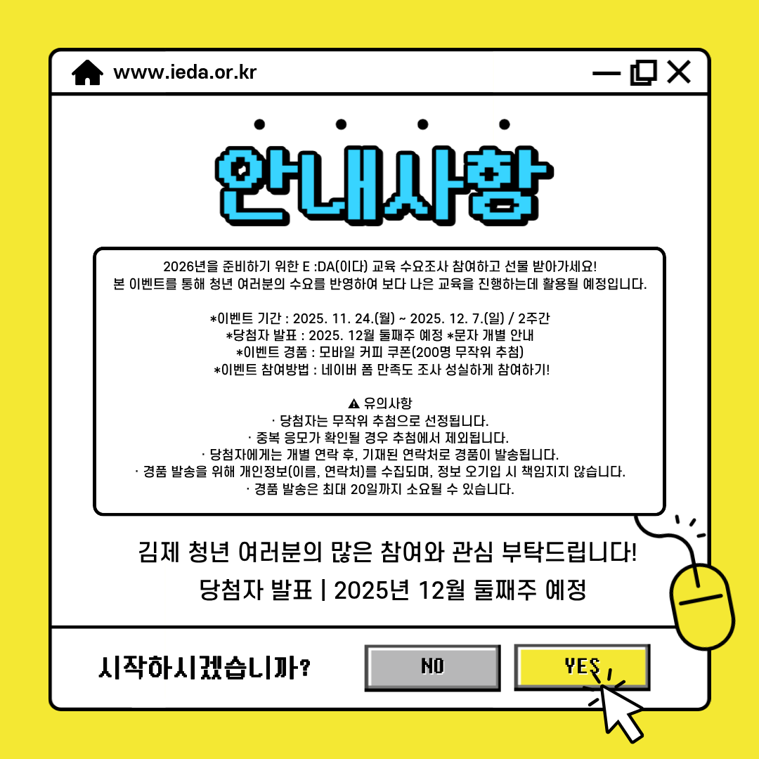 ★★김제청년공간E :DA(이다) 교육 수요조사 이벤트[11. 24.(월) ~ 12. 7.(일)]★★